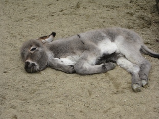 運動場では、元気に走り回ったり、お乳を飲んだり、コミミの後ろに隠れたり、死んだように寝たりと、大人のロバでは、なかなか見れない姿を見せてくれます。