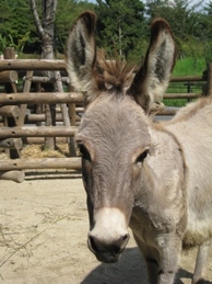 赤ちゃんとはいうものの、見た目は大人のロバたちとあまり変わらなくなってきました。生まれたころは、頭にトレードマークともいえるフワフワとした帽子の 様な毛が生えていたのですが、徐々にそのトレードマークもなくなっていき、違いといえば、ちょっと体が小さいのと、触った時、大人のロバに比べて毛がフワ フワとしているところぐらいです。