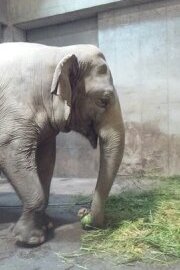 一度鼻で持ち上げたのに、また地面におこうとしています。諦めたのか?