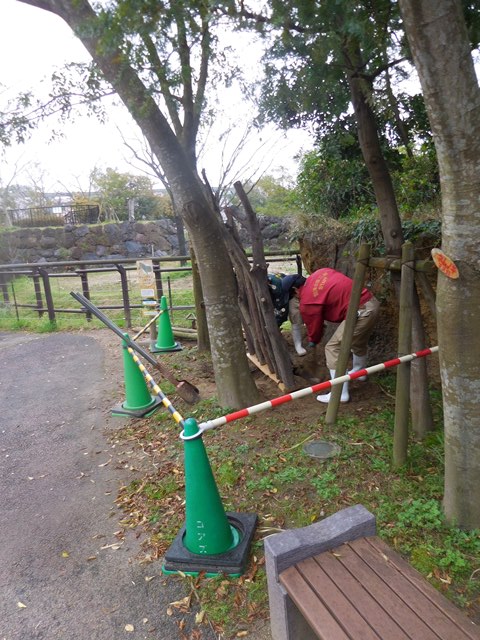 埋まっている照明器具の配線を切らないように、慎重に穴を掘っていきます