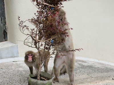 そんな様子をサルたちも気になるのか遠目から覗いています(笑)