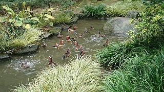キョロキョロまわりを見渡しながら、先頭をきったオシドリにみんなついていきます。