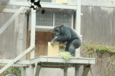 私たち飼育員も様々な工夫をしてエサをあげたり、運動場に遊び場や隠れる場所などを作っています。みんなの工夫もチンパンジーさんたちを楽しませてくれたね