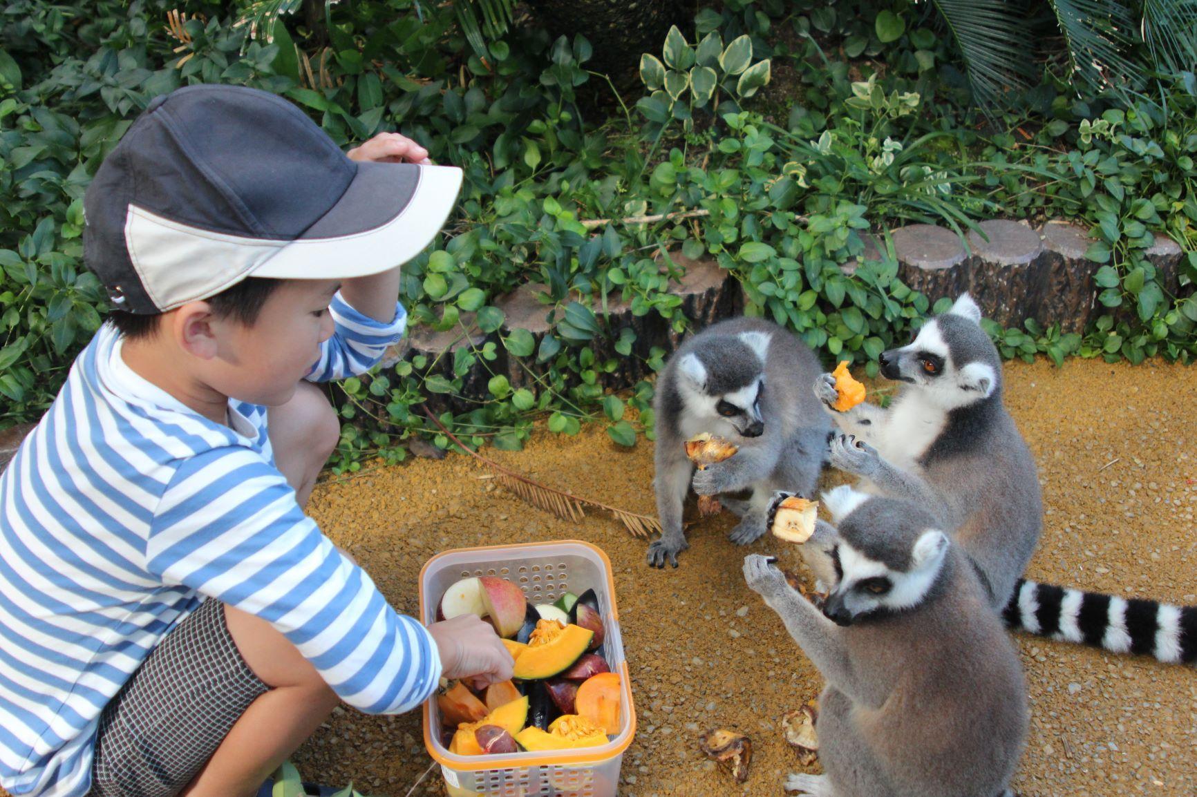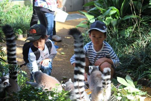 それをマダガスカルゾーンのワオキツネザルとエリマキキツネザルに運んで