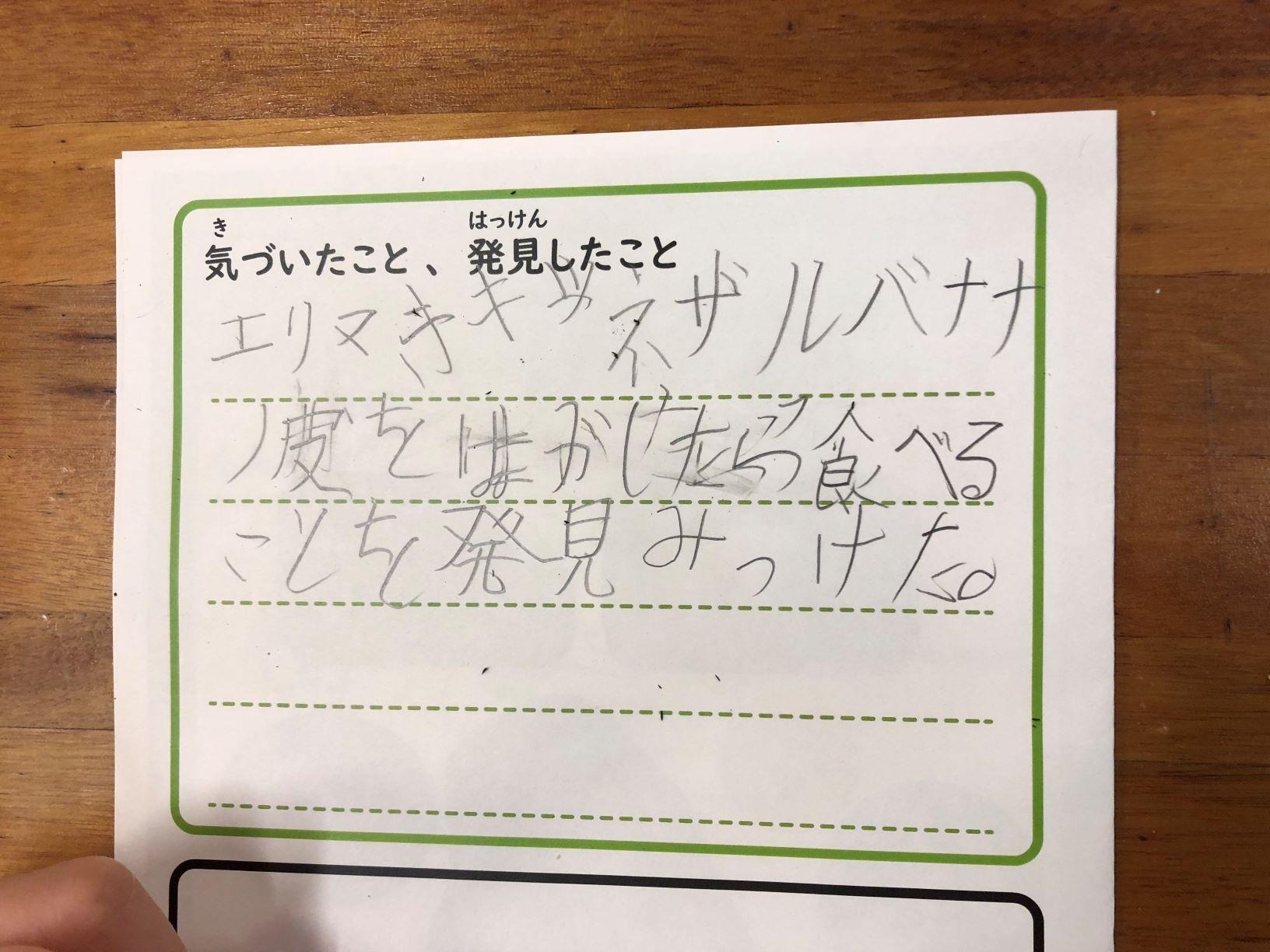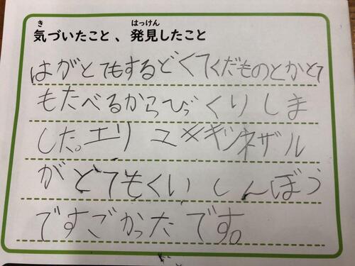 エサやりと観察のあとは、見つけたことを書いていきます