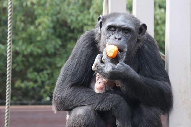 きょうは、みなさんにチンパンジーの双子キララとクララの温州ミカンの食べかたを伝授いたします