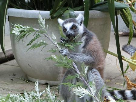 ワオキツネザルにはイモやニンジン、リンゴといった野菜や果物を与えていますが、