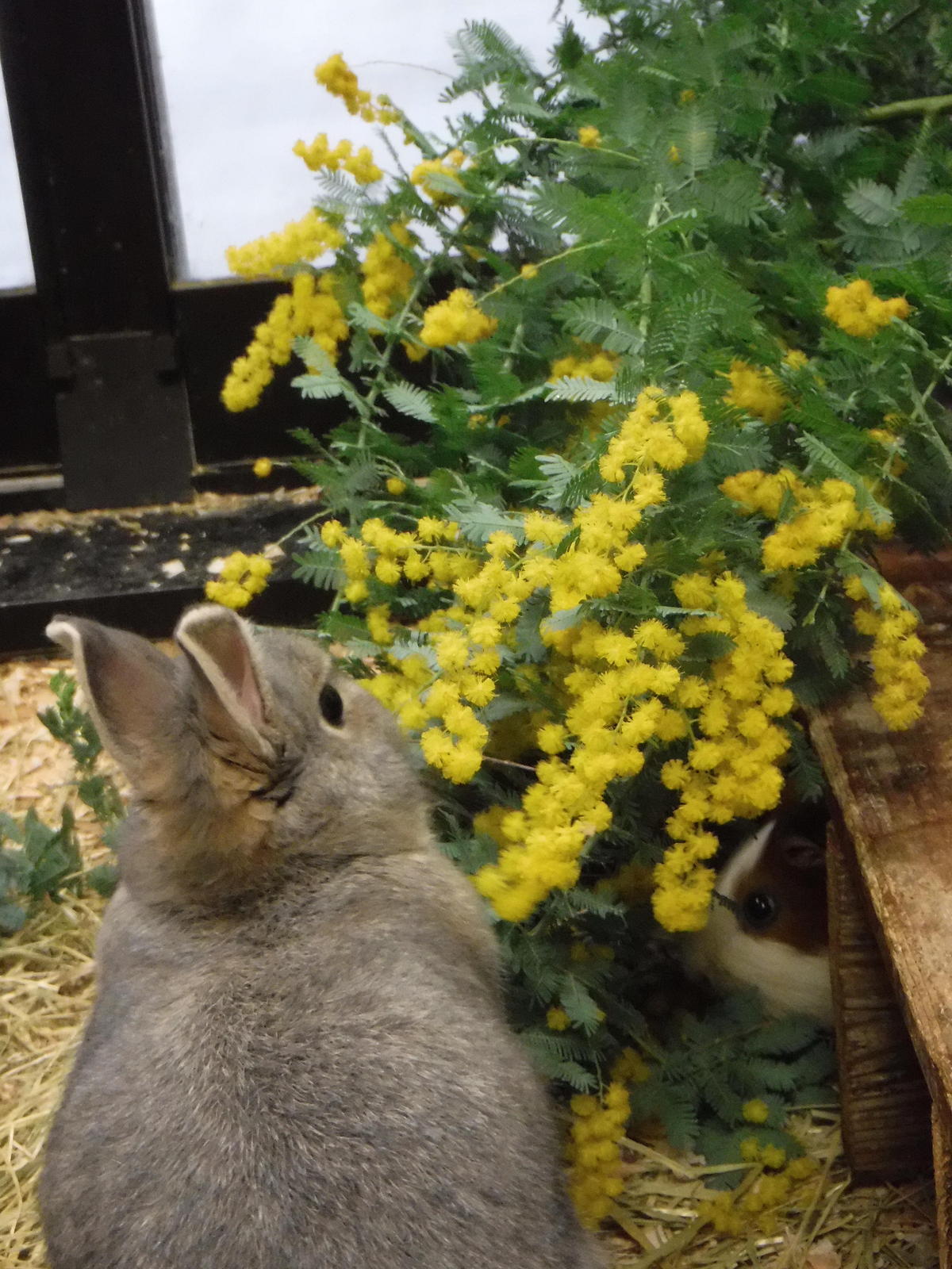 ウサモルハウスの動物たちにもミモザプレゼントをしましたので、その様子をお伝えします