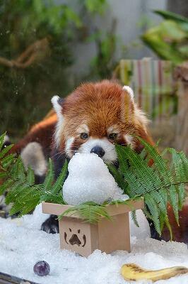 今回のイベントは雪の中で遊ぶレッサーパンダというよりは、「雪の上でのおやつタイム」になってしまいましたが、