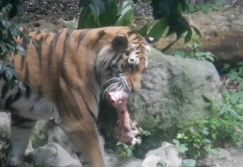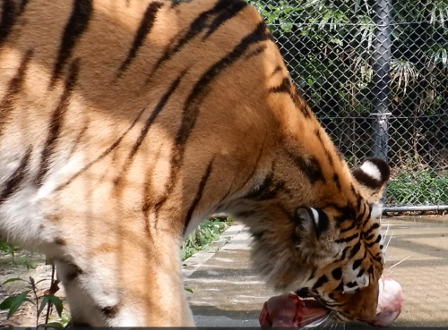 先日、アムールトラのミライに運動場で牛骨をあげました