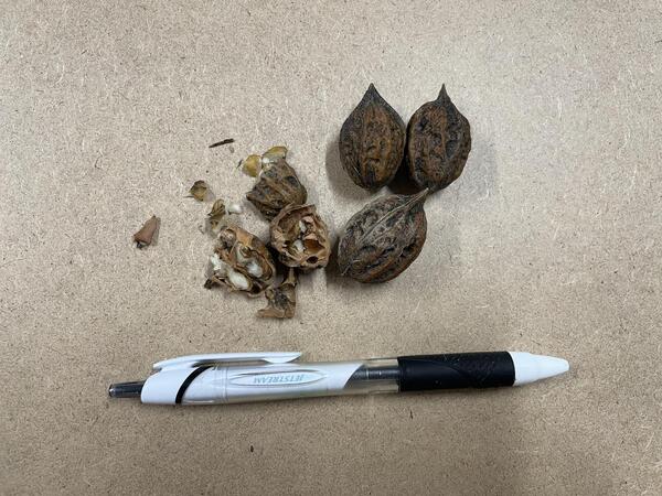 これは普段のごはんの殻付きのオニグルミ(お客様からいただきました)