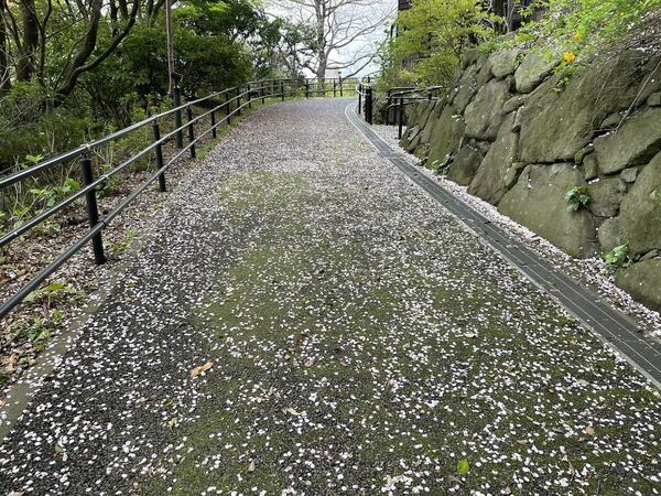 さて、そんな桜。咲いている姿はもちろん、散っていく様子もきれいですよね。足元を見てみると、こんなふうに花びらのじゅうたんが広がっています。
