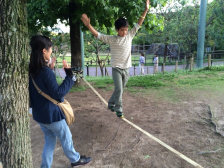 スラックラインという綱渡りのスポーツです。