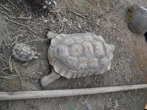 そんな日々を3月中は送っていましたが、4月からは、ホオジロカンムリヅルが戻ってきたため、天気の良い日の日中のみリクガメ舎にオカメを連れて行きました。