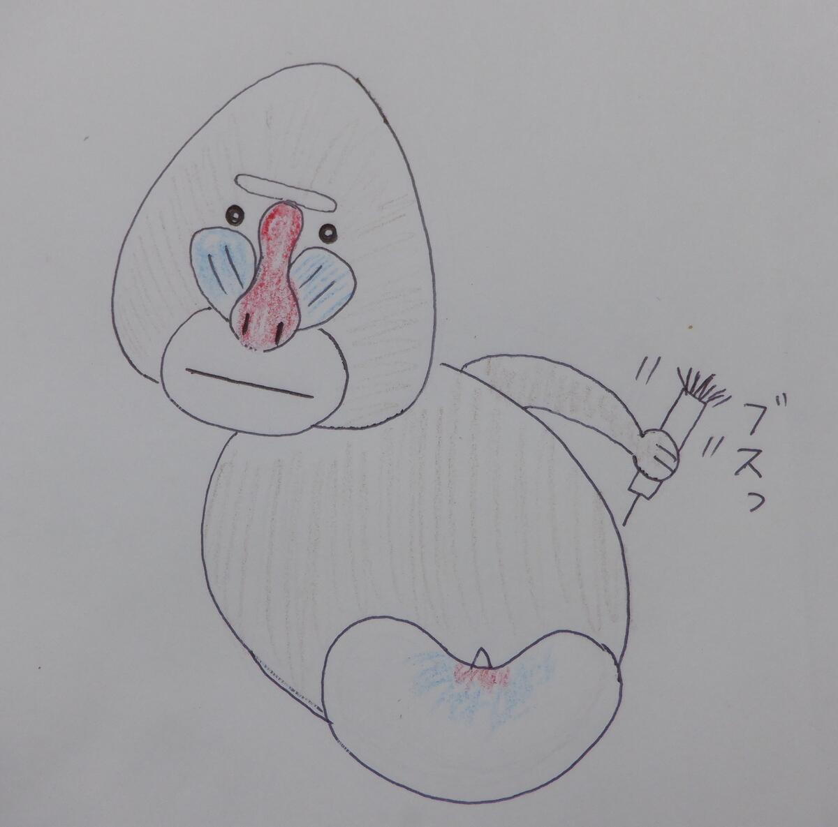 犬猫であれば、直接しこりを触ったり、しこりに針を刺したりして何なのかを調べるのですが、マンドリルは直接触ることはできません。ましてや、「ちょっとチクッとするだけだから、じっとしててね」なんてことも急にはできません。外傷からの感染によるものであれば、抗生剤で良くなるはず…ということで、まずは試験的に抗生剤を飲んでもらいました。しかし、良化がみられなかったため、麻酔をかけて切除することになりました。