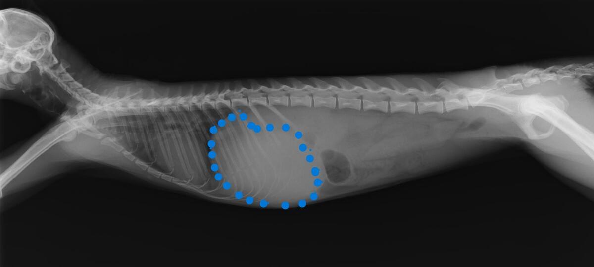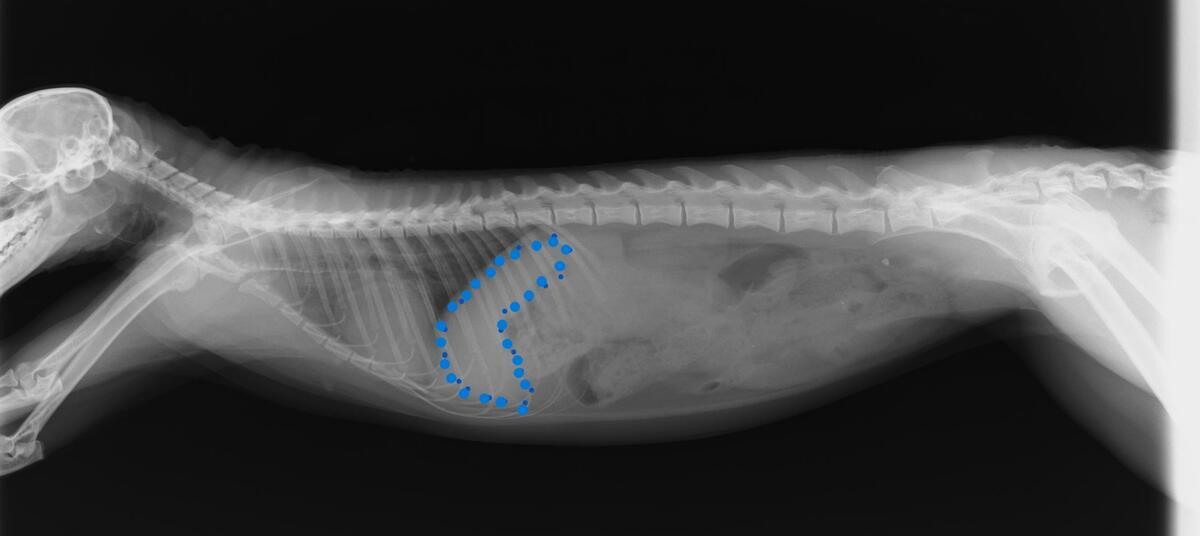 ↓2022年のレントゲン写真(青い点が肝臓)。