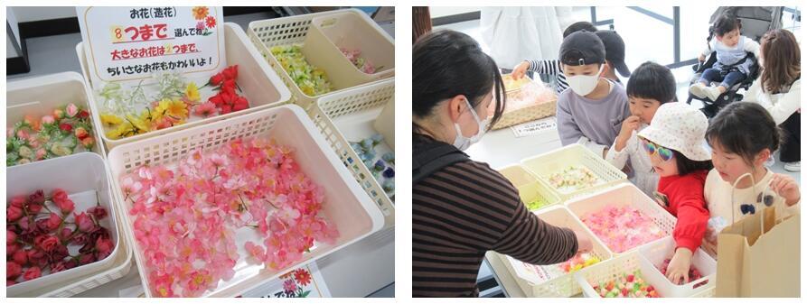 色とりどりのお花や可愛いぬいぐるみが並びます!「どれにしよう~、私は黄色のお花に決めた~!」
