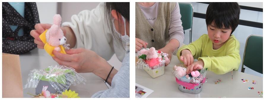 モールやリボンも使ってお花畑のような可愛い作品を見せてくれたご家族