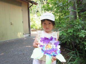 まずは、好きな色のお花紙、葉やシール、好きな動物飾りなどを選んでいただきました
