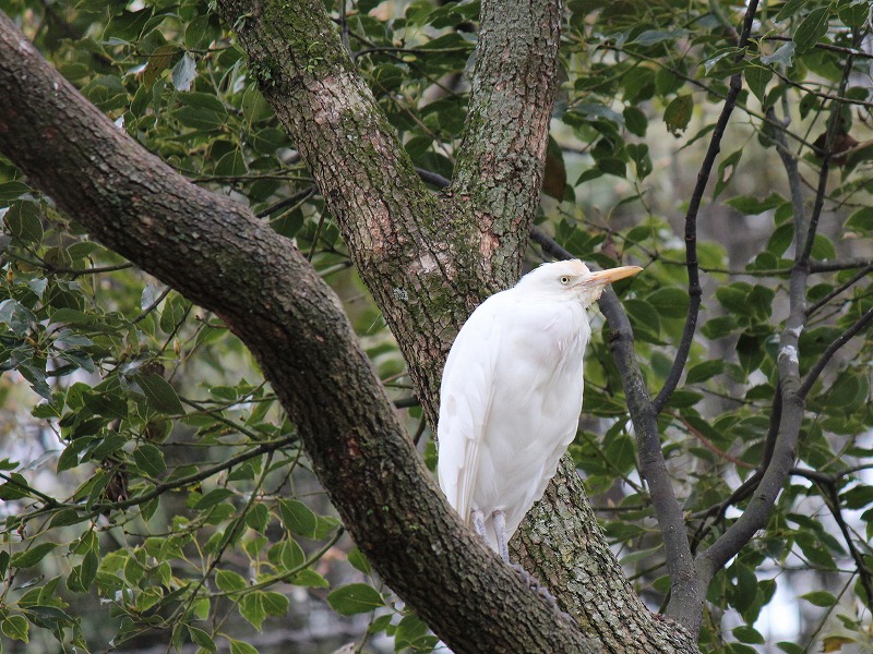 小さいサギですが、木の枝と枝の間を探してみてください。