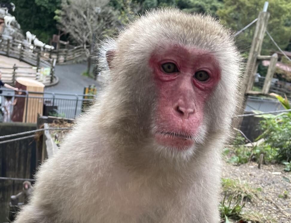 到津の斜面を利用して作られた高くそびえる岩山、急な斜面や池、植栽帯がサルたちの能力を引き出しています!!そして、サル山の周りに生えているサクラやツバキ、ヤマモモの木からは季節に合わせたプレゼント(花びらや実)がサルたちのおやつ代わりになります!!