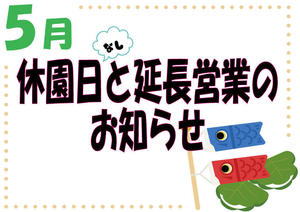 5月休園日と営業時間延長のお知らせ
